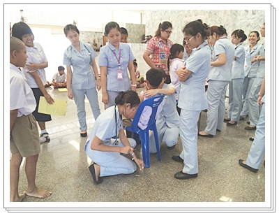 ทางโรงพยาบาลรามาธิบดีสมุทรปราการ ได้จัดเจ้าหน้าที่มาทำกาตรวจสุขภาพให้กับนักเรียนพร้อมกับให้ความรู้เกี่ยวกับเรื่องสุขภาพ