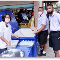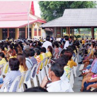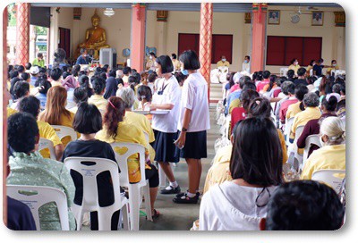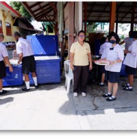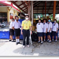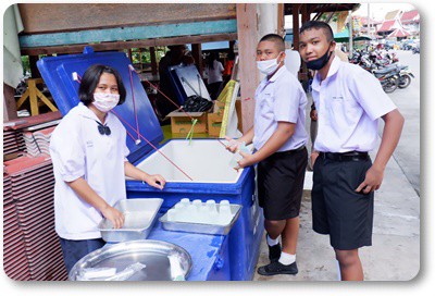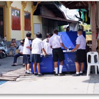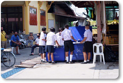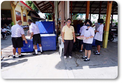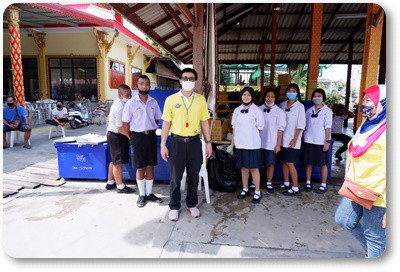 คณะครูและนักเรียนโรงเรียนวัดราษฎร์บูรณะ โดยการนำของท่าน ผอ.ดร.สุนิสา รื่นเริง ร่วมกันเสริฟน้ำและมอบถุงยังชีพของ ท่านชนม์สวัสดิ์ อัศวเหม ให้กับประชาชนชาวตำบลบางปลา