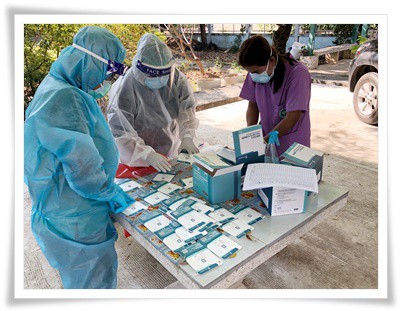 โรงพยาบาลส่งเสริมสุขภาพตำบลบางปลา ตรวจ ATK ครูโรงเรียนวัดราษฎร์บูรณะ ก่อนเปิดเรียน