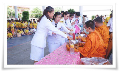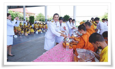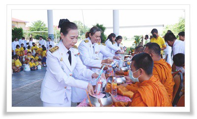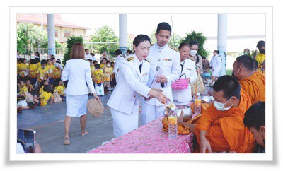 โรงเรียนวัดราษฎร์บูรณะจัดกิจกรรมวันเฉลิมพระชนมพรรษา รัชกาลที่ 10 มีการทำบุญตักบาตรและพิะ๊ถวายพระพร